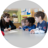 Discover what makes our school just right for your family! We are committed to an environment that is nurturing & supportive, playful, and diverse. Our goal is to help your child increase their social & emotional skills and get them Kindergarten-ready. We’re learning together while we sing, dance, create, and more. We’re developing our friendship skills, fine-tuning fine motor skills, working our funny bones, opening our eyes to new experiences, growing our understanding of other cultures & each other, and stretching our brains in new & numerous ways. Our school feels like family and that begins with our staff who are well-trained, experienced educators and good-hearted people.